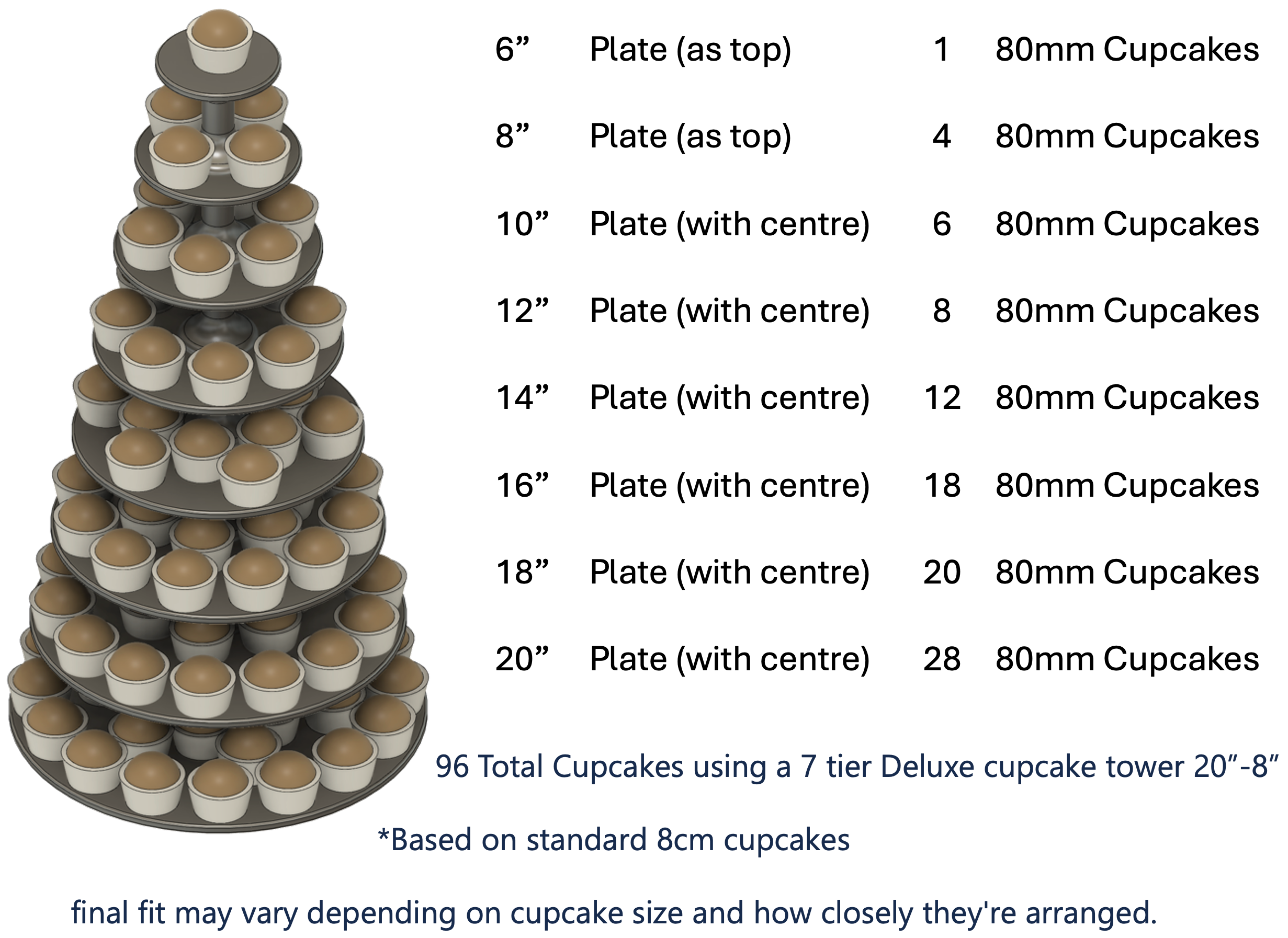 - Plate Sizes: From 6" to 20" depending on tier count