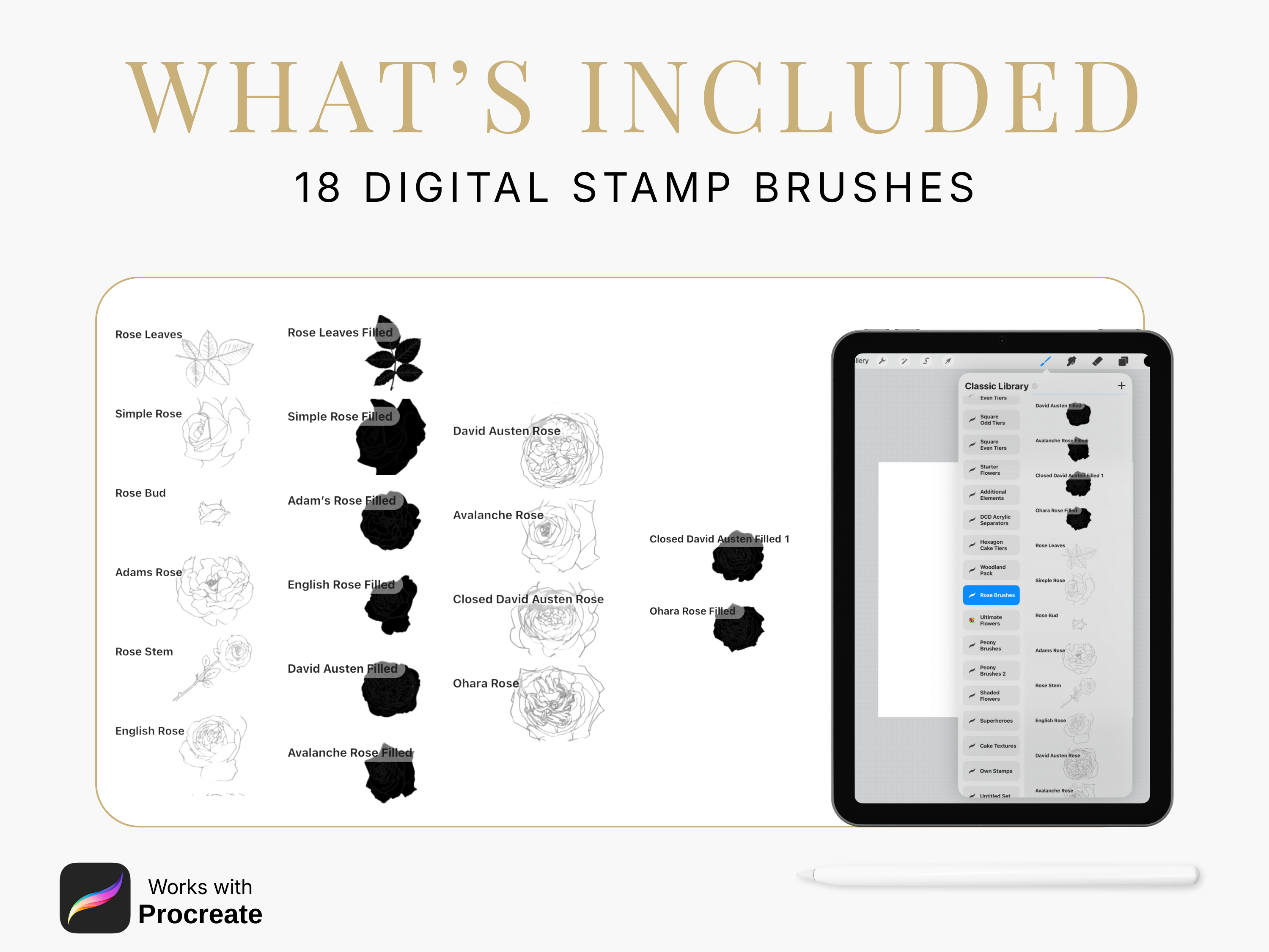 Rose Procreate Stamps: Outline & Filled Brush Set