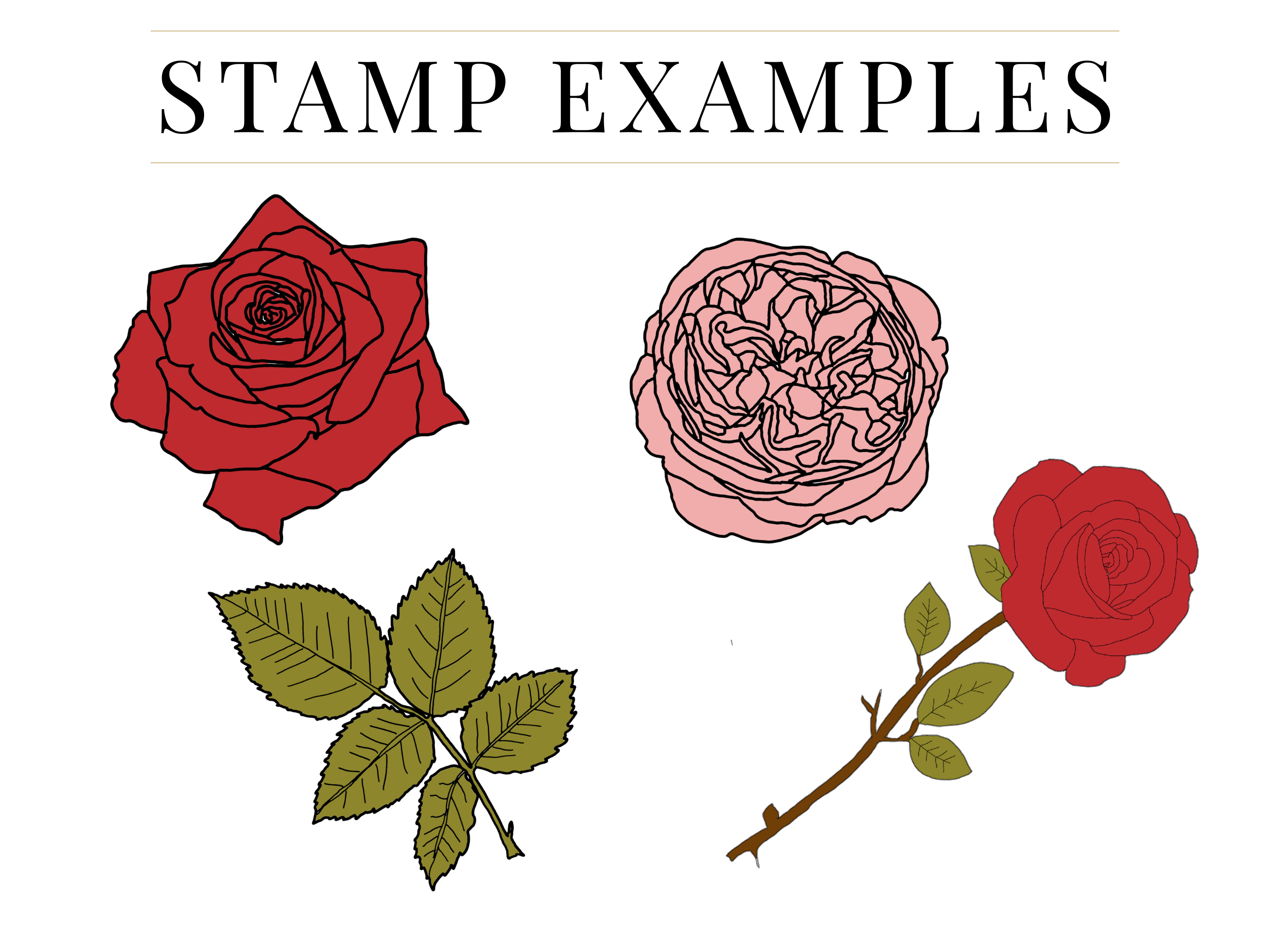Create beautiful designs with this Rose stamp pack. Perfect for flower cascades on cake designs, or any digital drawing.