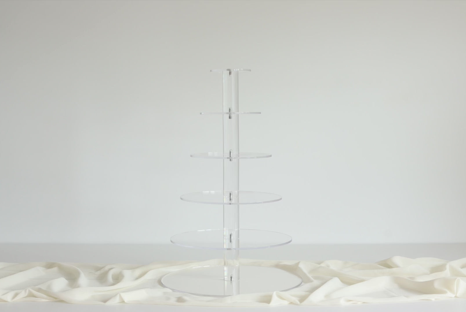 Each plate is precision-cut from ultra-polished acrylic, with tier diameters ranging from 6 inches to 16 inches and an approximate spacing of 10cm between each level. Designed for effortless setup and compact storage, it’s ideal for any event that demands a refined and professional presentation.